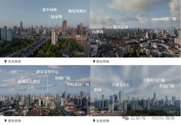 南望:思南公馆风韵、TX淮海潮涌尽收眼底,复兴公园绿意盎然,视线更可直抵徐家汇ITC中心、后滩SK大厦、卢浦大桥.