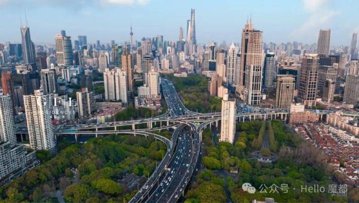 东瞰:延中绿地公园葱郁铺展,新天地繁华与陆家嘴“三件套”天际线同框入画!