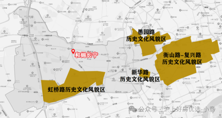 百年以前,这里就聚集了一众社会名流,形成了愚园路、新华路、虹桥路,东侧紧邻衡复,是传统意义上的老上海风貌区。