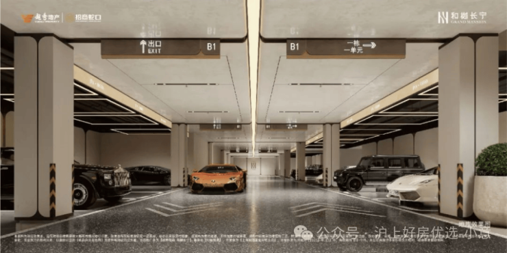 此外地下车库,不仅地面采用水磨石、主体车道全吊顶设计,每个车位上方还都有LED环绕灯吊顶,呈现给业主橱窗展示柜般体验,用来展示自己的“大玩具”;