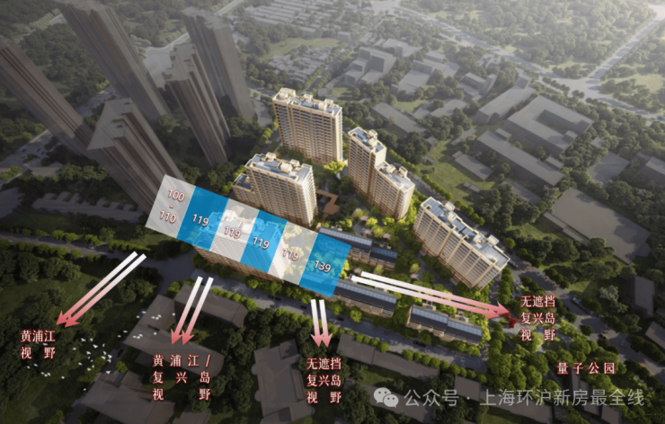 未来从小区侧门就能直接进公园,于业主,不仅多了个休闲天地,更相当于“降低了项目实际居住密度”,东侧视野开阔,还能和复兴岛景观无缝衔接。