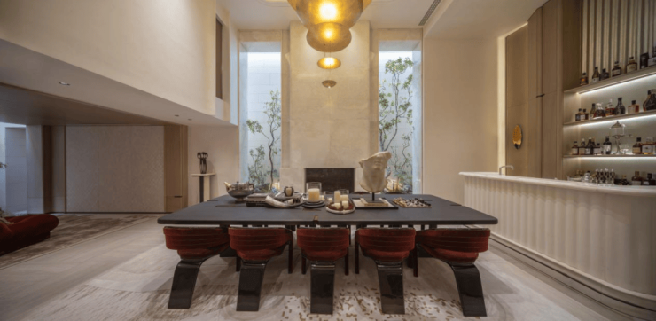 【地下会所】:“双层挑空+三面采光”的设计,将自然光与绿意最大化引入地下,打造出室内景观花园、会客客厅、影音空间等,让这里不再是附属空间,而是成为家庭休闲、茶会、阅读与聚会的疗愈场域。