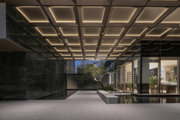 •尊崇礼序:光影连廊、精奢门头、臻奢石材和玻璃盒子,打造入户仪式感