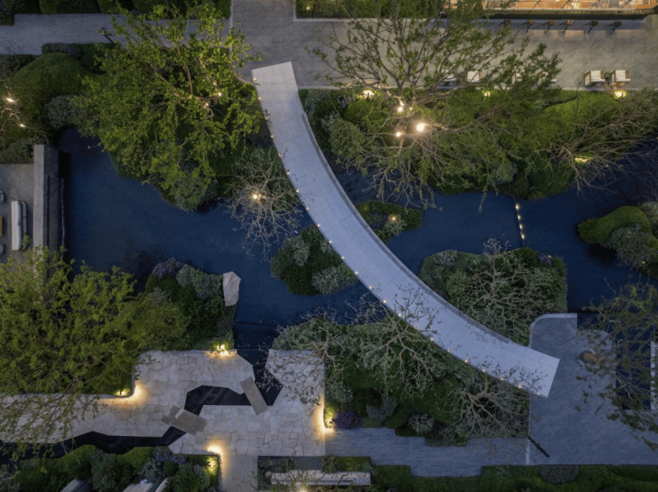 •水系归家:以水为线索,形成归家的生动游线,青影浮桥、日落幔庭,移步异景