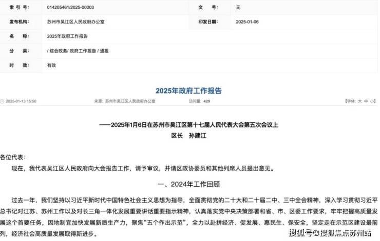 近日,在吴江官方网站上,发布了《2025年政府工作报告》,其中总结了2024年成果,并展望了2025年的工作计划。