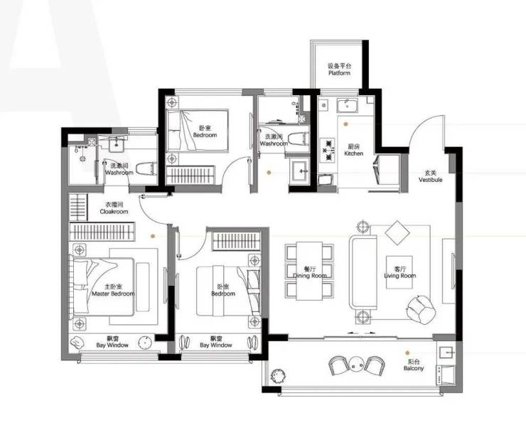 110㎡三房两卫:经典小三房,空间利用率超高,适合年轻家庭购房。