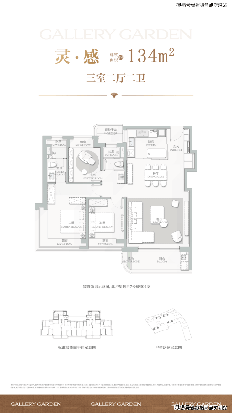 建面约134㎡3房2厅2卫▼