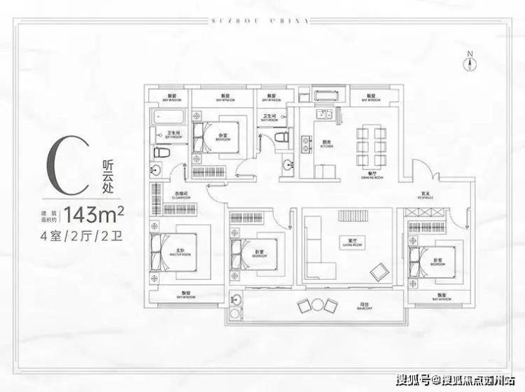灵动美学:户型方正,南北通透,4房设计,自由多变,追求舒适想象