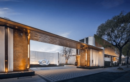 这是一种借鉴传统宅邸礼序的入户空间,兼具车辆落客、临时停靠与宾客迎送功能,既保障了业主归家的私密性与便捷性,又通过对称布局、景观造景等设计营造出尊崇的仪式感。