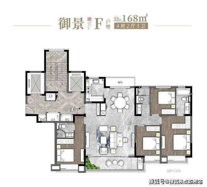 部分户型具有标准层高设计,户型方正,空间使用性高,有独立玄关提升隐私性。4室的设计适合改善型人群,2卫的配置可避免抢卫生间的尴尬,保证主人生活的私密性。餐厅和客厅无缝连接,营造出局部大空间的体验。房间动区简约大气,提供舒适的生活娱乐氛围。部分主卧采用套房设计,扩大了卧室面积,配有独立的主卧卫生间,提升了主人的居住体验。部分户型的主阳台朝南,若装配落地窗,采光较好,且户型朝南的房间较多,可充分享受“冬暖夏凉”的舒适体验,同时南北通透,厨卫全明,室内采光无死角。
