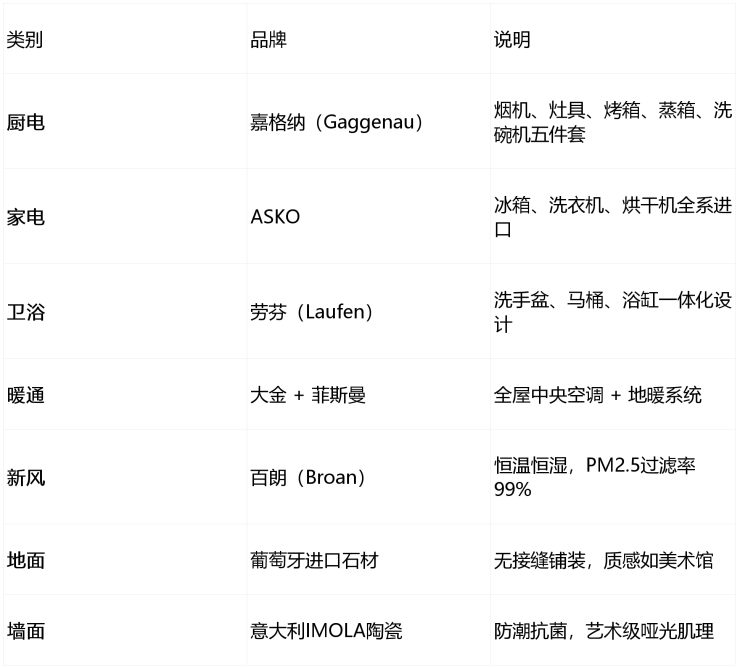 精装标准:国际一线品牌全系标配