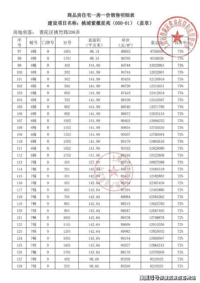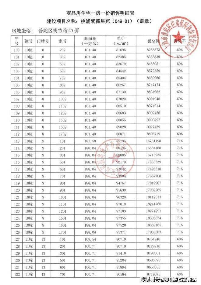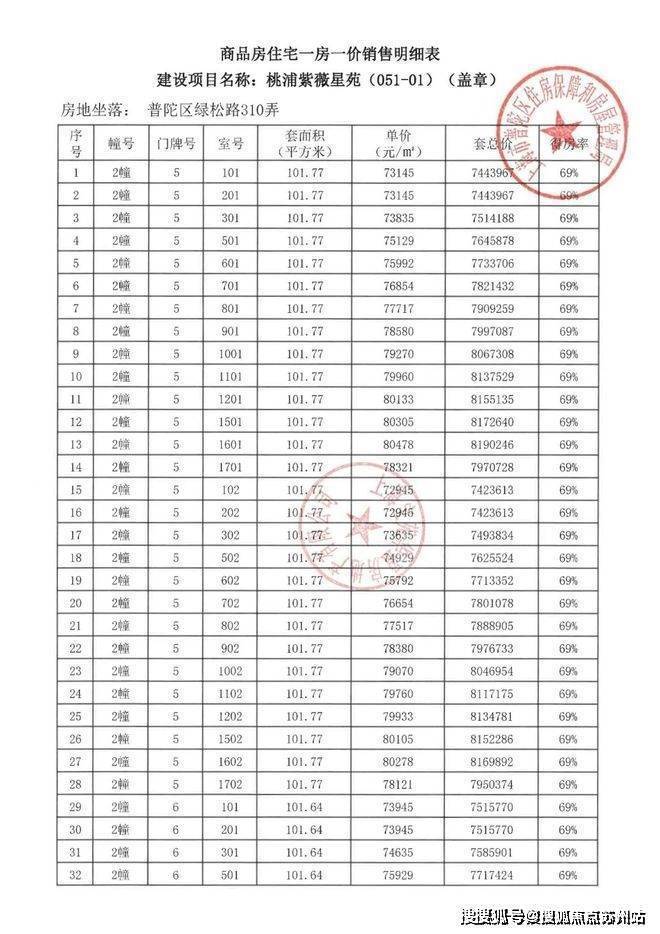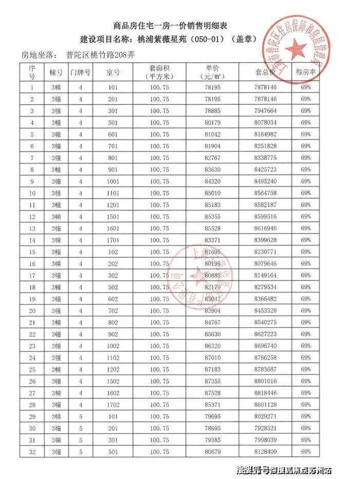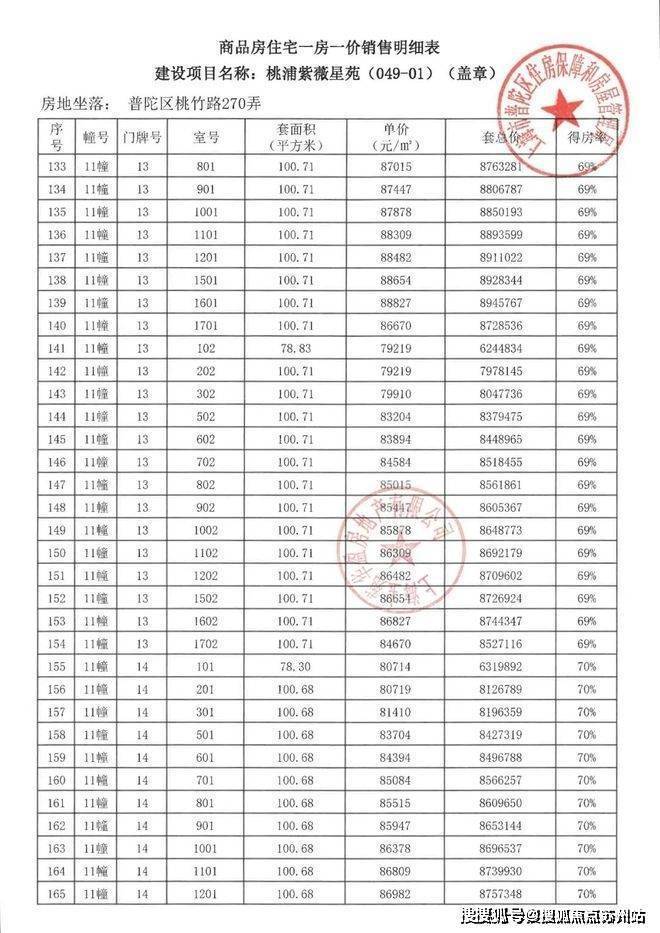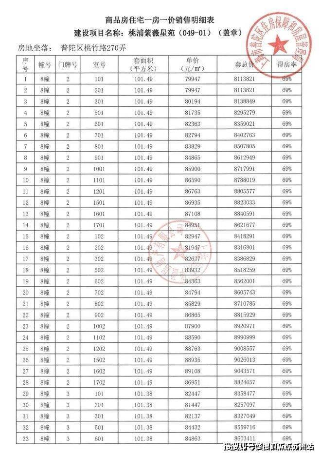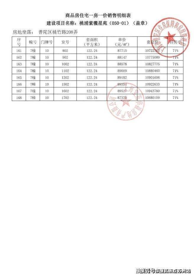 项目一房一价表