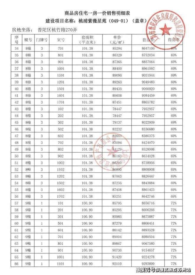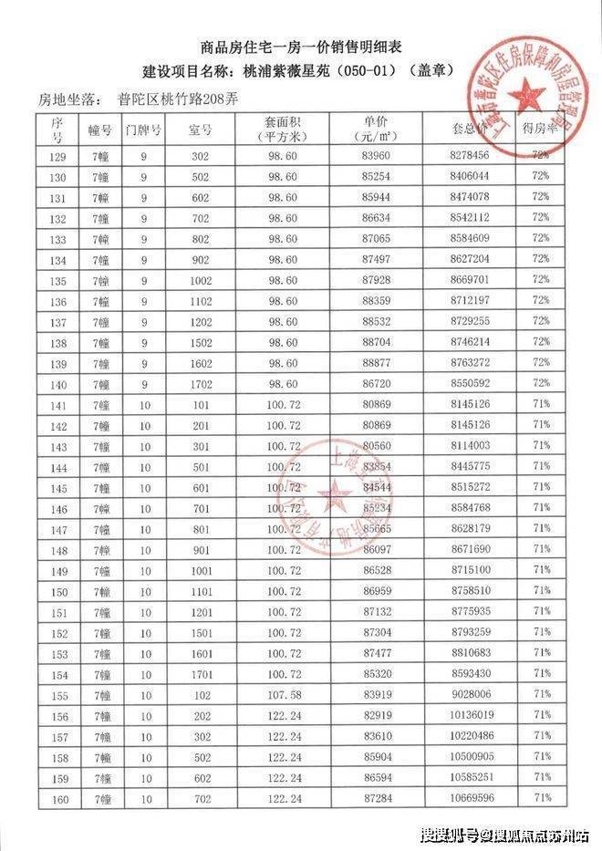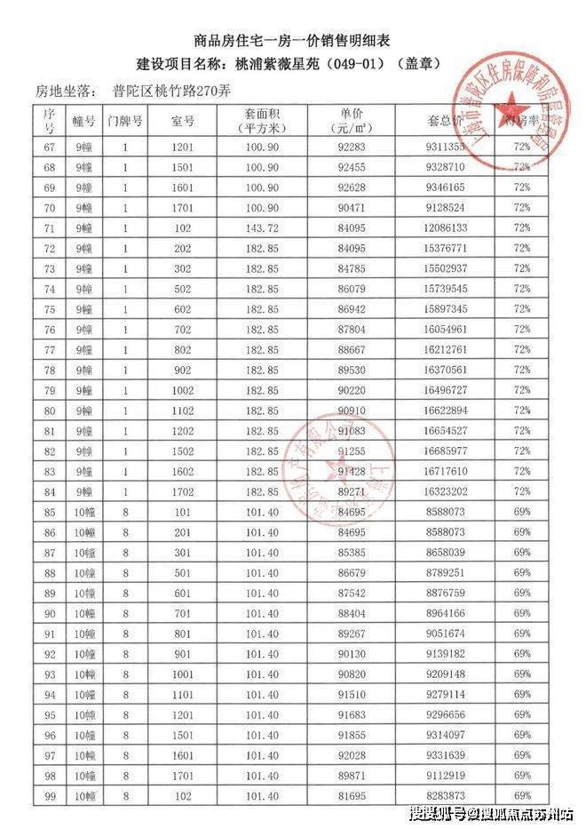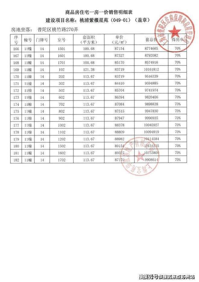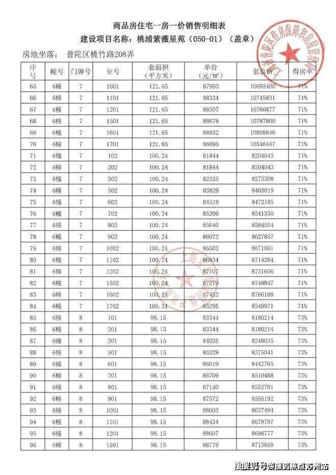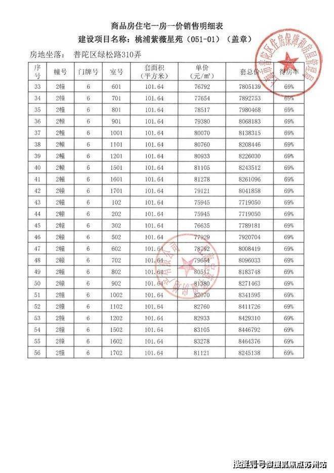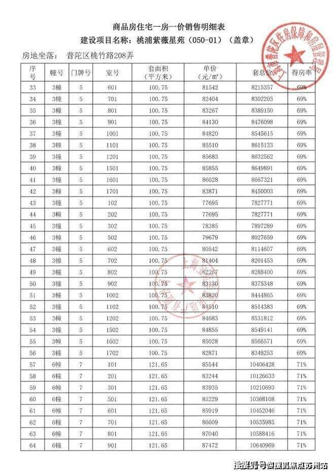 项目一房一价表
