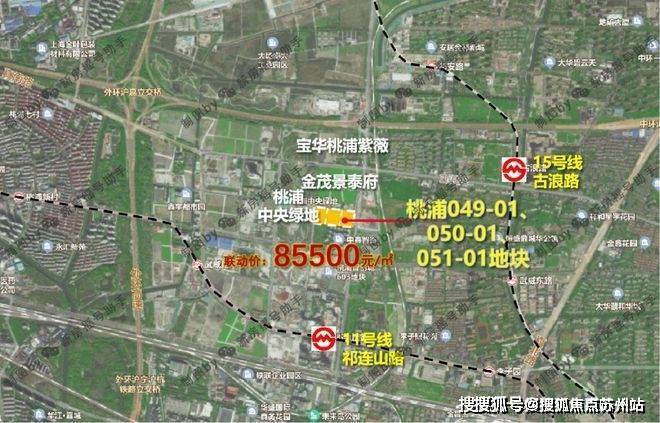 2023年8月,上海二批次土拍,宝华&东苑以总价328800万元成交普陀区桃浦科技智慧城(W06-1401单元)049-01、050-01、051-01地块,地块出让面积30126.9㎡,容积率2.5,溢价率4.05%,楼板价43655元/㎡,房地联动价85500元/㎡。