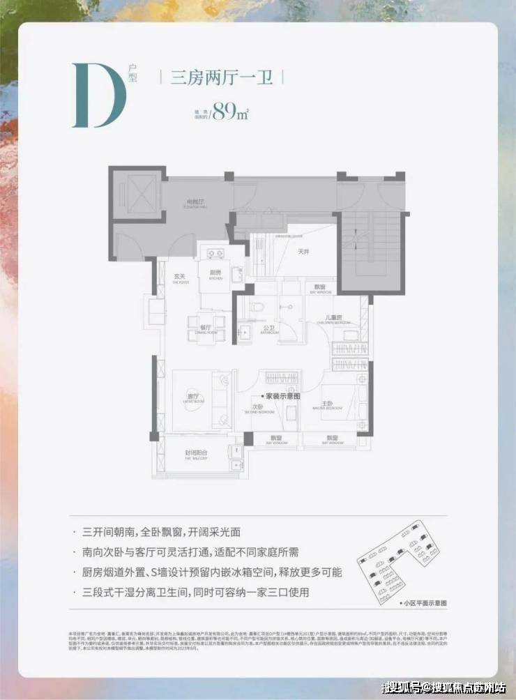 建面约89平3房2厅1卫(中间户) 金地嘉峯汇售楼处电话:400-867-3567✔✔