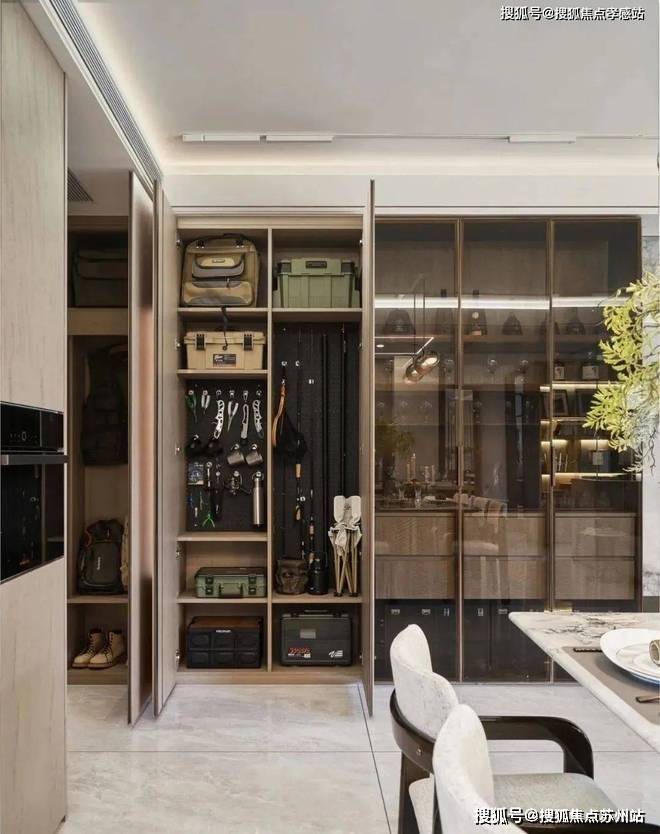 全屋收纳系统,满足一家老小海纳空间!约2.25mx2.4m的超体量玄关柜,为生活扩容,可容纳约56个20寸行李箱,而玄关柜、岛台、卫生间镜柜、主卧衣帽间等空间,把更多隐藏空间打造成超级收纳功能,让未来的生活井井有条。
