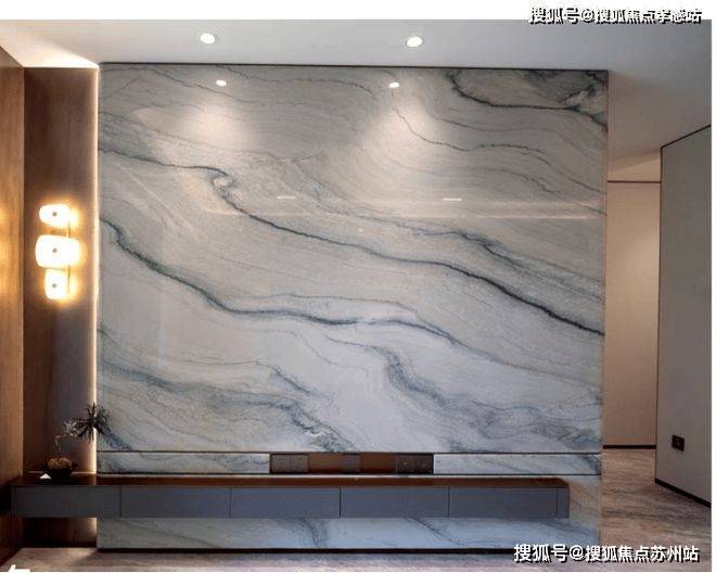 电视背景墙选用带有东方意蕴的万里河山石材,颜值超高!