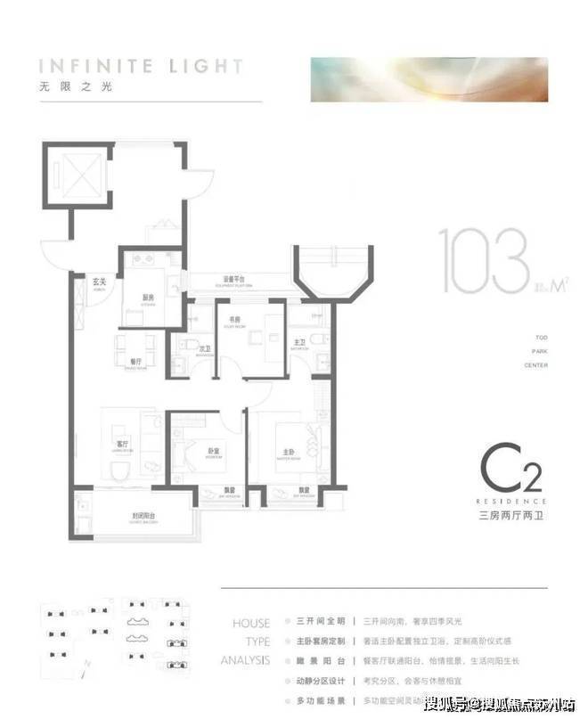 · 光:打造宽奢落地全景阳台,滨水公园美景一览无余;