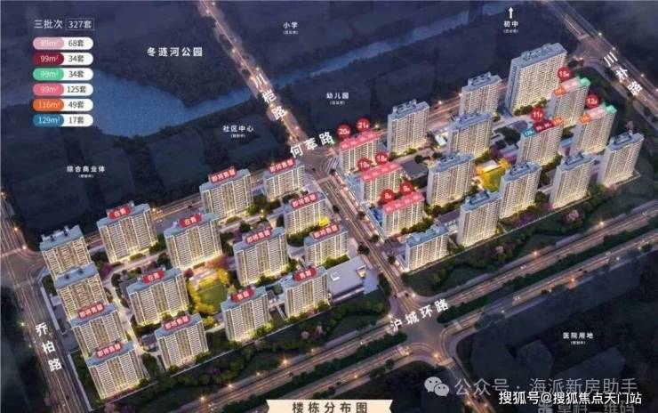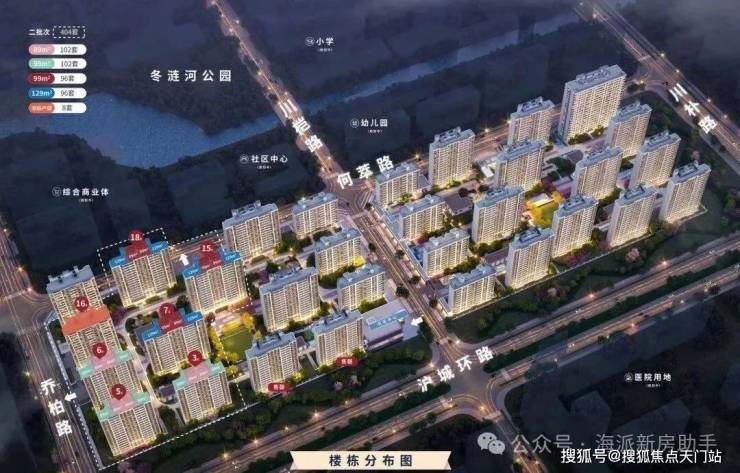 2. **户型与得房率**:主力户型为89-129平方米的三至四房,针对刚需和首改客户。宣传中着重强调**约79%的高得房率**,特别是89平方米三房两卫户型,以此作为核心卖点。