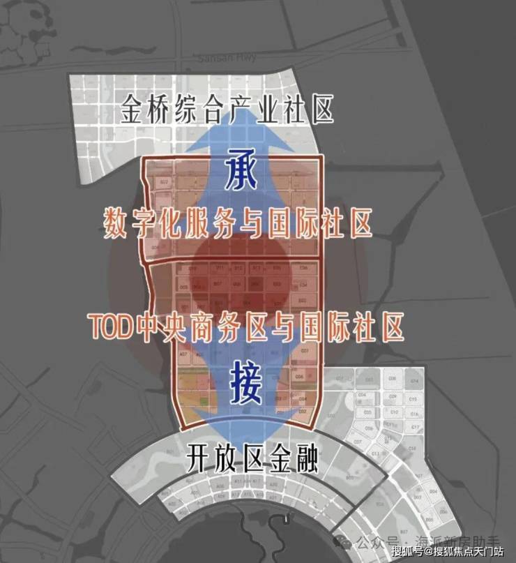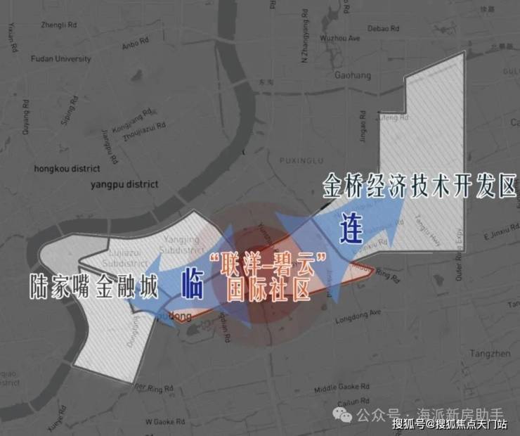 浦东新区的“联洋&碧云”国际社区,西侧“临”陆家嘴金融城,东侧“连”金桥经济技术开发区,而临港105片区数字化服务与国际社区同样北面“承”金桥研发产业,南面“接”开放区金融,两者有异曲同工之妙.