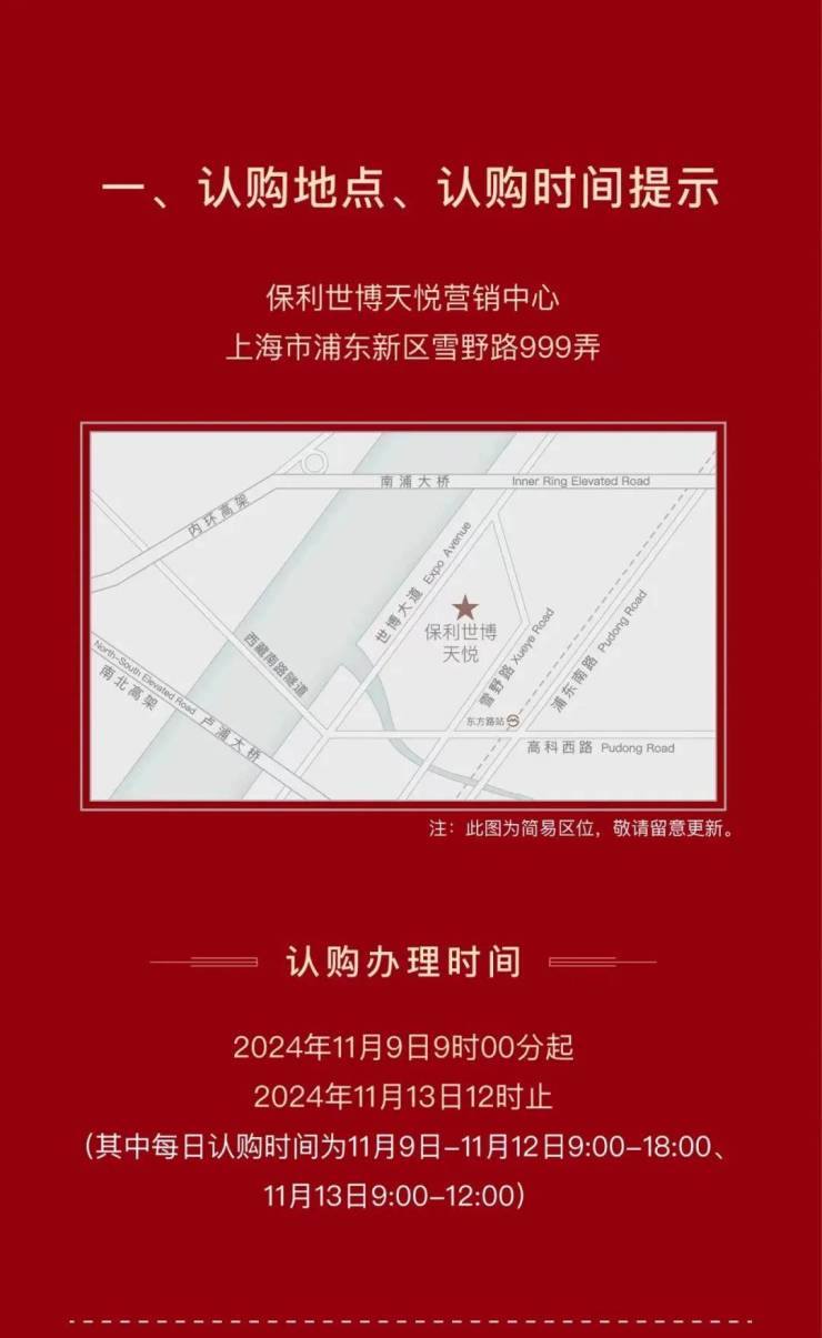 1、项目推广名为“保利·世博天悦”,地名核准名/备案名为“玖丽璟庭”,开发公司为:“上海华辕实业有限公司”;预售证号:浦东新区房管(2024)预字0000332号;2、本资料为要约邀请,不作为要约或承诺;3、相关宣传内容不排除因政府相关规划、规定及出卖人分期规划、未能控制等原因而发生变化;4、买卖双方的权利义务以双方签订的商品房买卖合同及其补充协议、附件等书面文件为准;5、本宣传材料所涉及户型仅供示意参考,具体以政府部门最终审定的图纸和销售合同为准,本资料所涉及面积皆为预估面积,相同户型单位因楼栋、楼层、单元等差异,局部结构、形式、面积、装饰等可能有所不同,且预估面积与实际面积可能存在差异,面积最终以房管局测绘为准。户型图中装修、家具、电器等设备仅为示意,不属于交付内容和交付标准,实际部品的选型和房间空间尺寸根据户型情况,略有差异,以现场实际为准;6、本宣传资料中涉及的价格、折扣、付款方式等信息,因销售时间、户型楼栋、楼层、方位等不同有所差异,以双方签订的商品房买卖合同及其补充协议、附件等书面文件为准;7、本资料所发布的内容为2024年11月的信息,敬请留意最新资料。