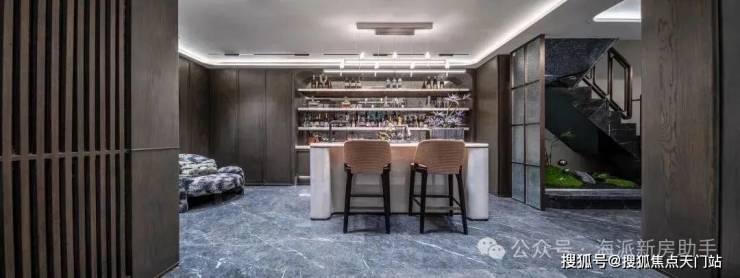 地库入户大堂公区打造,招商臻境同样也极尽匠心,吊顶上采用了具有海派风格的内凹式弧面造型;廊柱腰线以及门边运用奢石点缀,柱子与柱体采用精致的弧形倒角设计,庄重而不失典雅。