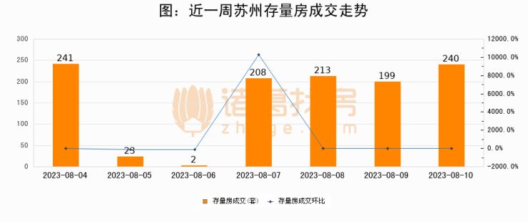 从存量房来看,2023年08月10日苏州存量房单日成交240套,比昨日增加41套,环比上涨20.6%。从近一周存量房成交来看,苏州存量房日均成交套数为160套,08月10日单日成交240套,高于近一周平均水平50%。