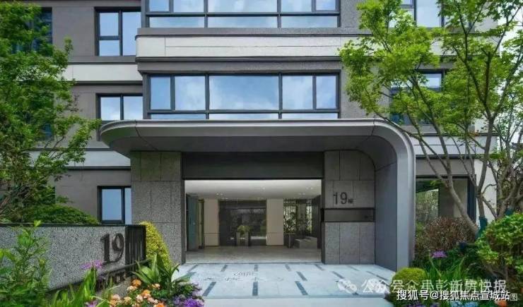 拾阶而上,苍松迎客,中轴对称挑檐新中式门头屹立,归家第一眼即惊艳。