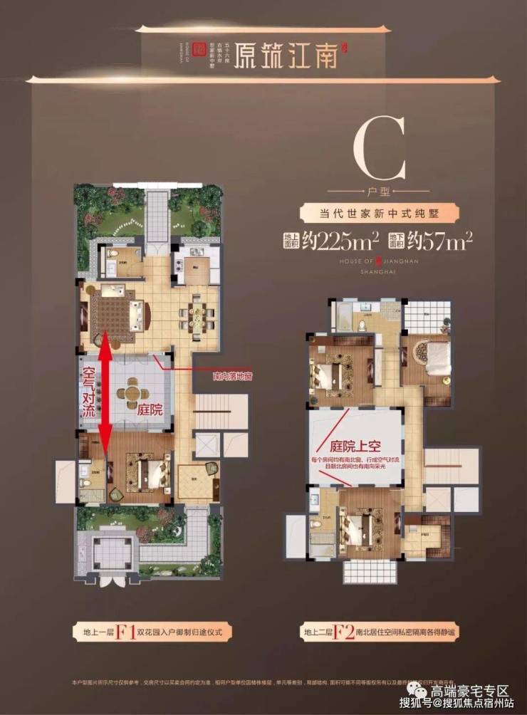 项目采用中式院落式布局设计,每家都能够享受私人庭院,以最小面积225平为例,在户型的中间部分,有一处围合式庭院,位于客厅、卧室的中间处,自家人的院落私密性极好.