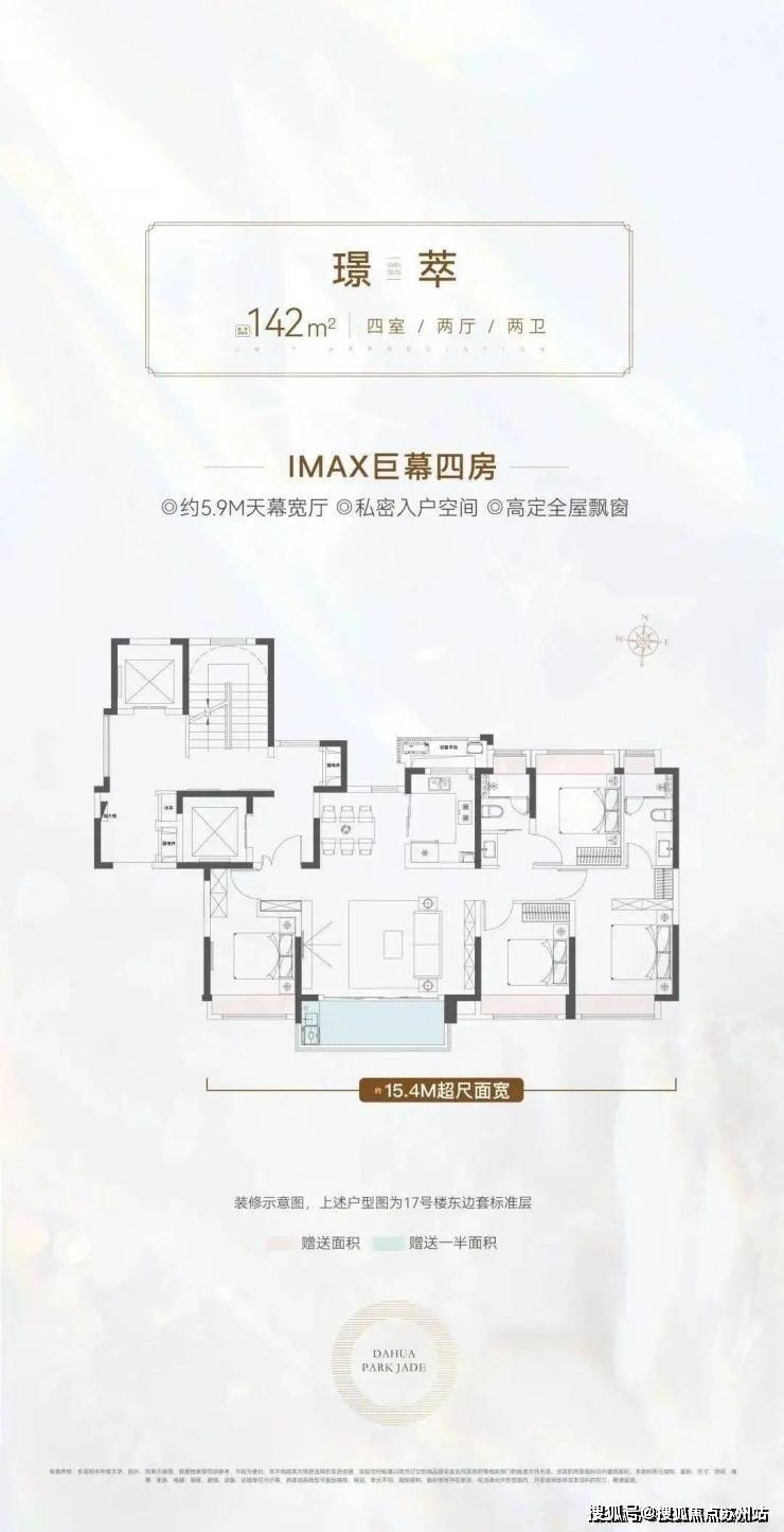 真正一步到位的改善型4房产品,大横厅的设计,四开间朝南+大横厅,约15.4米的南向面宽堪比别墅。