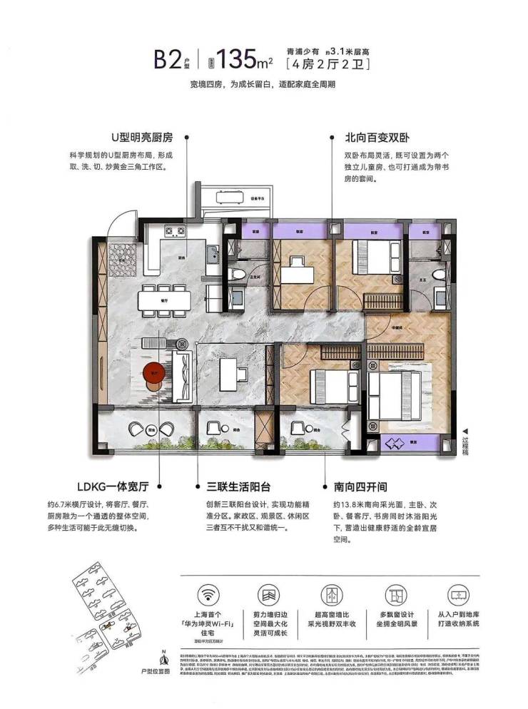 项目全屋标配 华为全屋智能+方太厨电等一线品牌,其中很多亮点都是区域首发,创新设计 “一站式化妆”的悦己卫浴和 “一步到位”的效率厨房