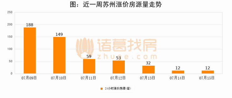 根据诸葛找房数据显示,苏州24小时涨价房源量为12套,较07月14日持平。