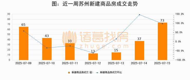 【苏州成交日报】07月15日新房成交73套、二手房198套;涨价房源12套