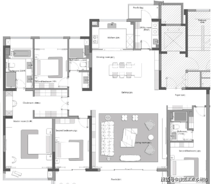 建面约239㎡,是目前姑苏区在/待售大平层中,面积最大的户型,是古城真正的稀缺品,只可惜套数太少,中签全凭运气。