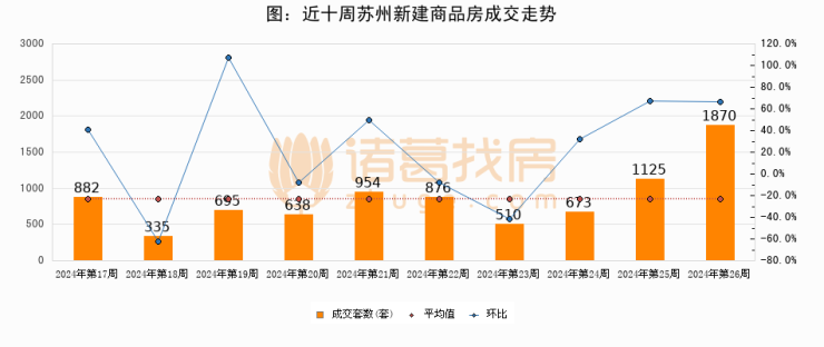 【苏州成交周报】第26周新房成交1870套,二手房1529套,涨价房源1516套