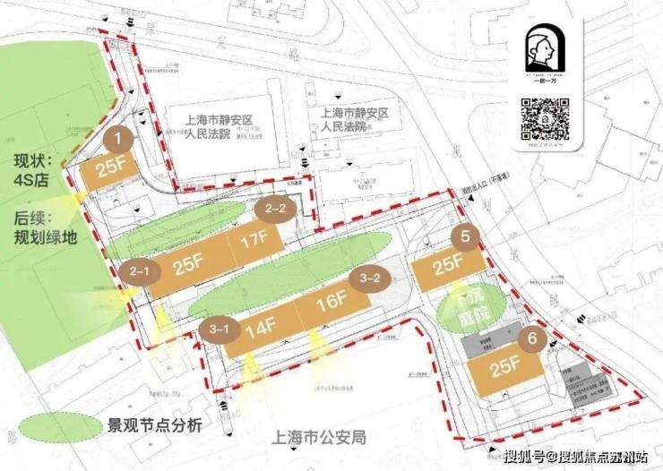 项目外部没有显著的景观,但地块西北角未来将规划为公共绿地,这将为居民提供一个休闲和放松的好去处.目前该区域为汽车4S店,未来将进行改造.