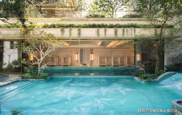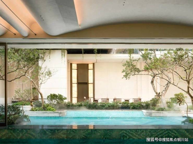 泳池采用专业三泳道恒温设计,室内外的双泳池无界设计让泳池与下沉庭院消融边界,实现室内外空间的无缝衔接。泳池底部以“蕙兰花”为艺术符号贯穿空间,形成独特品牌标识,让空间成为可生长、可共鸣的“生命体”。