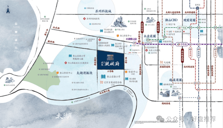 区域内高新产业、5A景区、太湖中心mall(现已开业)大型商业、品质教育集萃,城市资源要素承载之地,地脉价值不彰自显.