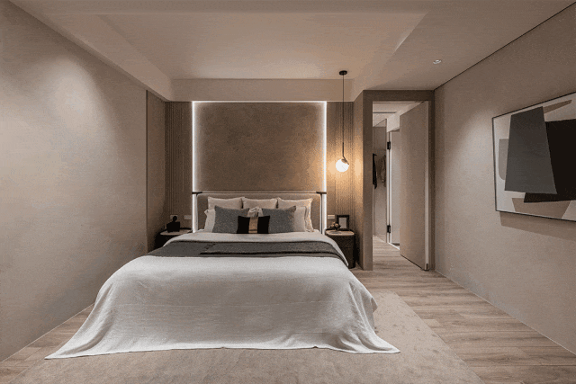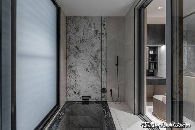 选用线条瑰丽的薄板映现主浴的轻奢精致感