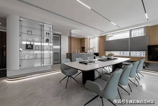一席大长桌搭配灰系皮革椅,凝聚一家人的飨食时光