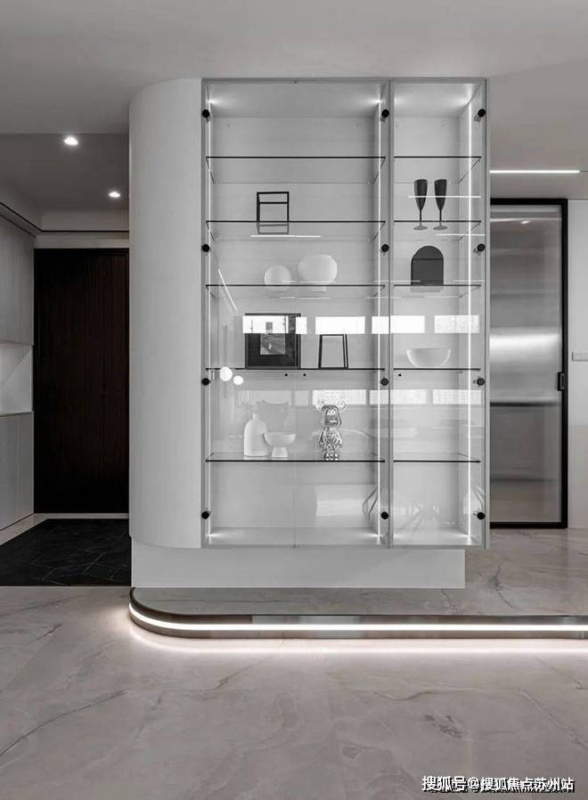 柔弧曲线轻画的腰墙与开放柜,则展现圆润气息