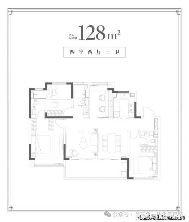 洋房户型-臻雅建筑面积约128㎡ 4室2厅3卫