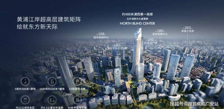 项目具体位于北外滩“一心两片”规划中的“一心”——中部核心商务区.这里正快速崛起为世界级的商务集聚区,规划有18栋摩天大楼,包括在建的480米浦西第一高楼,以及来福士、白玉兰广场、华贸中心等顶级商业地标,目前已吸引超过35家跨国公司总部和百余家大型企业入驻,未来将是上海经济密度最高的区域之一.