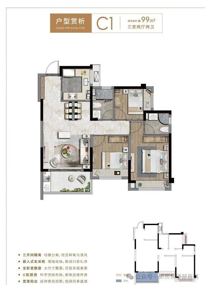 【户型】:瞰景高层 : 73㎡、85㎡、99㎡、(精装)