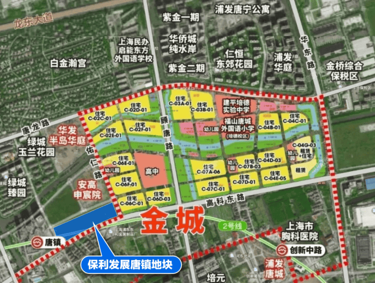 这地块属于唐镇核心地块,算是唐镇地铁上盖项目,与2号线唐镇站直线距离不到300米,南侧紧贴着高科东路。
