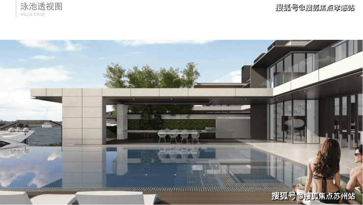 泳池里两旁的庭院,可以与亲朋好友相聚。