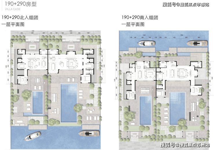北入户的190+290房型,一层朝南直面庭院和泳池,如果配上整扇的落地玻璃移门......