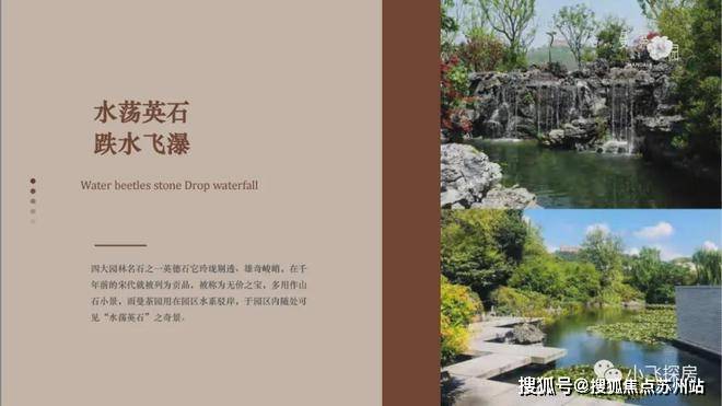 水荡英石跌水飞瀑WaterbeetlesstoneDropwaterfall四大园林名石之一英德石它玲珑剔透、雄奇峻峭,在千年前的宋代就被列为贡品,被称为无价之宝,多用作山石小景,而曼荼园用在园区水系驳岸,于园区内随处可见“水荡英石”之奇景。