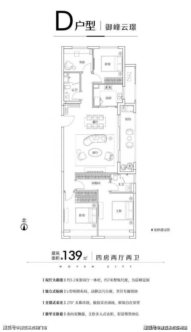 以建筑面积约139㎡为例:“四叶草”设计,让四个卧室格局独立,每位家庭成员都可以享受到无比舒适的起居尺度和私密生活;客餐厅一体化设计,集合了欢聚时光与亲密关系,营造出开放的互动场景;与宽厅自由接洽的跑道式阳台,更打破了空间界限,迎纳风景与阳光入室。