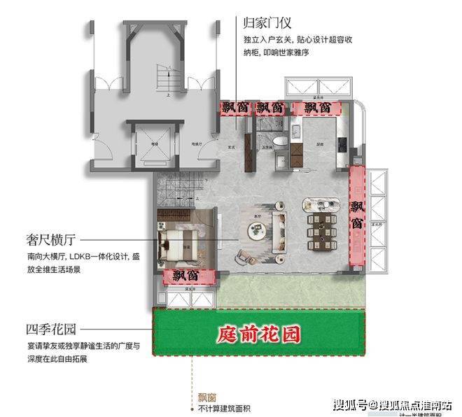 4飘窗+“跑道式阳台”设计,使得一层附赠的面积很大.